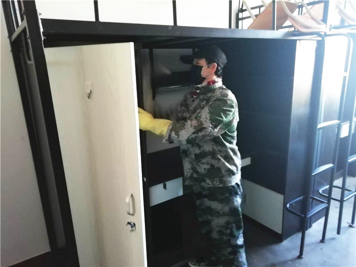 新年过后,后勤管理中心率先组织部门职工弹性复工,部分人员于2月3日到岗,保洁组对学校设置的独立隔离区进行全面的清扫、布置、通风、消毒等工作,确保隔离区内卫生安全,做好消毒记录。同时,校医务室人员提前到岗,完善新冠病毒防疫隔离区工作流程及冠状病毒医学观察消毒措施等制度,并指导现场消毒工作。电工组、水暖工组积极做好供电、供水、及供暖保障工作,同时积极配合做好隔离区的供电照明和开水器的安装。在行政、教辅20日上班之前,保洁组对全校的办公区域、教师公寓、学生宿舍进行集中的清扫、通风、消毒,确保“环境卫生不留死角,清洁消毒不留空白”,为学院疫情防控工作提供了强有力的保障。食堂管理中心高度重视,严格落实防控措施,20日前食堂工作人员对就餐大厅、后厨通道、食品制作间等区域进行打扫和消毒,并做好消毒记录,要求全体必须员工佩戴口罩上岗,并通过了食药监督部门的开餐前的验收。自20日后抽调宿管组职工协助学院行政部门值守学院东门,认真做好入校人员的测温登记工作。后勤综合组为确保学生开学后的顺利的投入到学习生活中,检修各个学生公寓的设施,并对3号学生公寓卫生间进行维修工作。