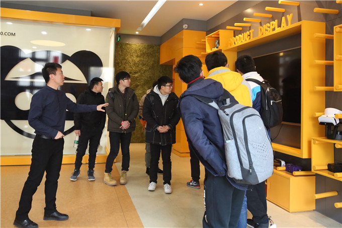 在87870总部,由市场负责人席志刚带领师生参观了企业内部,并进行了详细的介绍,让学生对企业的运作有了更深层次的认识。项目总监董艳超向beat365英国官网师生全面的介绍了87870的企业历史发展以及行业定位。高端讲师李慕为我系师生带来主题为《从手游发展看虚拟现实技术前景》的讲座。在讲座中,李慕老师从学生们非常感兴趣的手游做延伸,详细的介绍了手游的发展史、游戏引擎的发展史,以及虚拟现实技术的概念。帮助学生们更清晰的建立起对虚拟现实VR、增强现实AR、混合现实MR的基本认识。