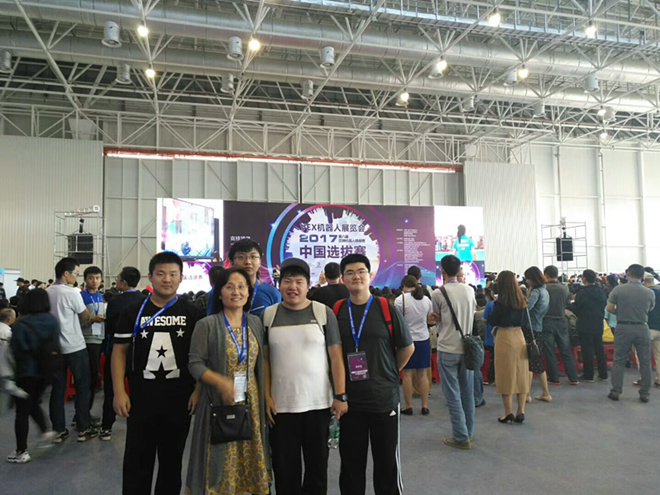今年,在院系领导的大力支持下,我院智能工程系机械设计制造及自动化专业开设的机器人工作室首次组队参赛。参赛队由机制专业负责人赵建琴老师带队指导,参赛成员由机器人工作室李哲宇、王国嵩、孙再生、周浩钧、郝宇轩五位同学组成。