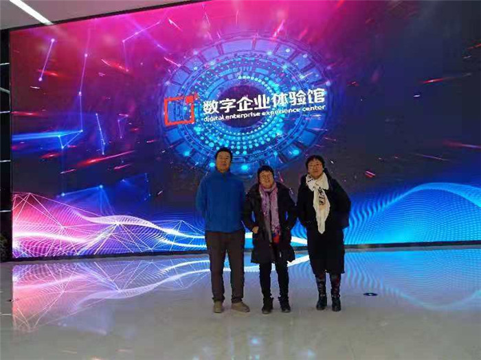 首先,三位老师在用友集团接待人的带领下参观了用友集团数字企业体验馆,了解了用友的发展历程、发展方向以及业务拓展情况,感受到了用友公司与时俱进的先进经营理念。三位老师与用友新道科技股份有限公司的北京省区总经理尹总和工作人员进行了会谈。