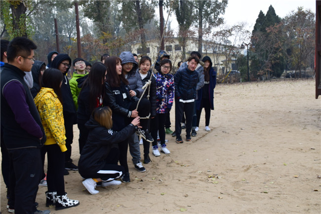 11月9日,为培养学生干部团结协作,互相帮助的责任意识,提高学校学生组织凝聚力和向心力,加强学生组织内部沟通交流,由团委在学院拓展专用场地举办2016年新一届学生干部素质拓展训练,参加拓展的院系级学生组织代表共40余人。由体育与艺术教学部李晓鹏老师、李安日老师组织指导进行。
