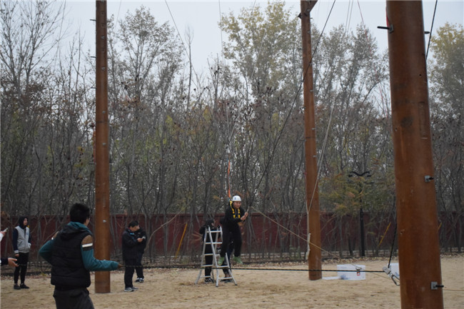 拓展训练首先,李晓鹏老师对此次活动进行简要介绍,对活动规则进行说明,并鼓励每一位学生干部通过此次活动建立团队意识。随后,学生干部们在老师们的带领下,进行了“绳圈传递”,“勇过鳄鱼岛”和“极速索降”等活动。在活动中,同学们团结协作,遇到困难时,每名同学积极思考,共同讨论,商量对策。遇到“险境”时,每名同学积极探索,互帮互助,不抛弃,不放弃。而在成功后,大家的脸上洋溢着快乐的笑容,并对以后的工作和学习,充满了信心。