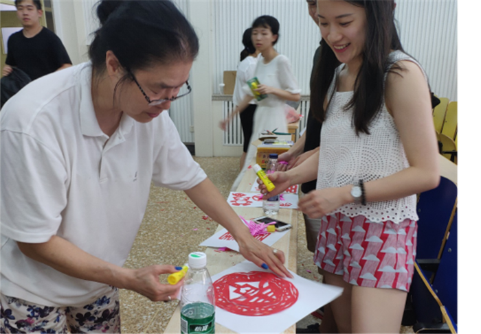 第二部分的文化及文化教学与体验,同学们对于体验兴趣盎然。国画,中国结,剪纸,中国舞,太极等这些都是中国文化的载体,学生们一边学习一边实践。
