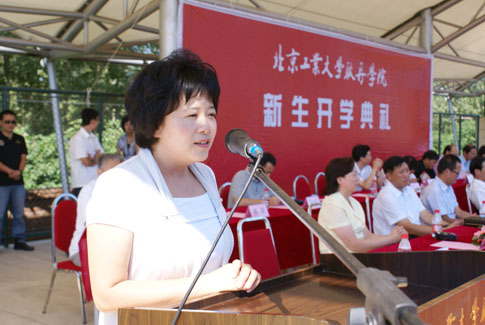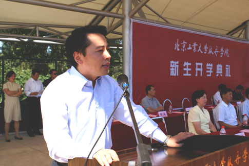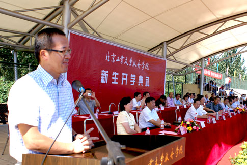 北京市委副书记、教育工委书记王安顺为开学典礼发来贺词,“祝学院不断发展、学生不断进步”。