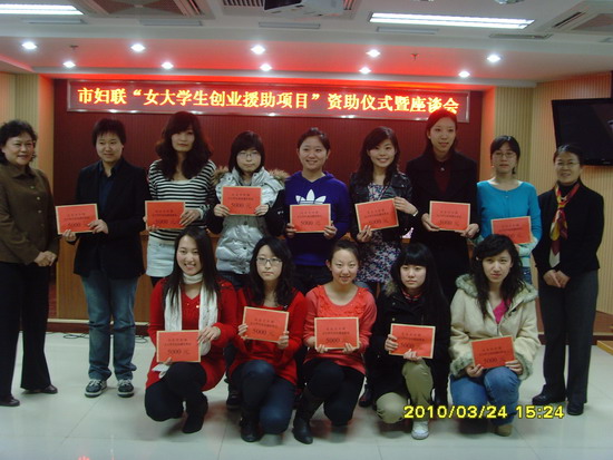 3月24日,由市妇联和市教委学生处举办的“女大学生创业援助项目”资助仪式暨座谈会在北京市大学生就业指导中心举行。由我院就业指导中心推荐的机械系金秋,经管系阮吉莉两名同学分别获得援助资金5000元。