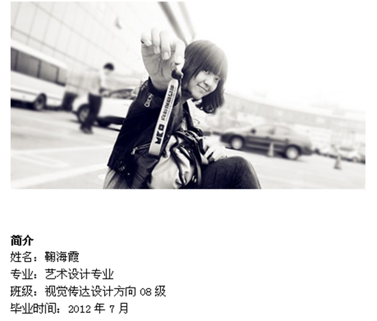 鞠海霞:我在2012年9月考入中国人民大学艺术学院,设计艺术学专业,研究方向为视觉传达设计。