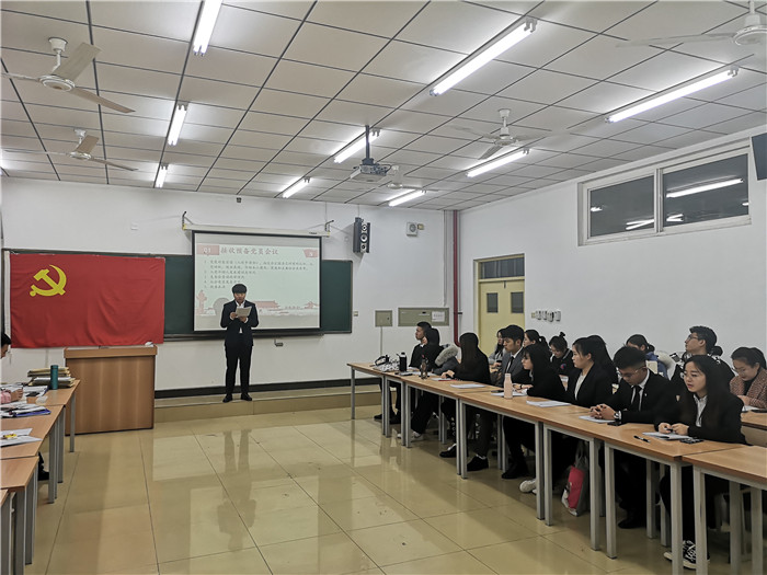 耿丹国际商学院学生党支部于2019年11月29日晚,在教学楼B202召开了党员发展和预备党员转正大会。beat365英国官网党委副书记孙磊、国际商学院学生党支部书记王霞参加此次会议,支部宣传委员高瑞主持。