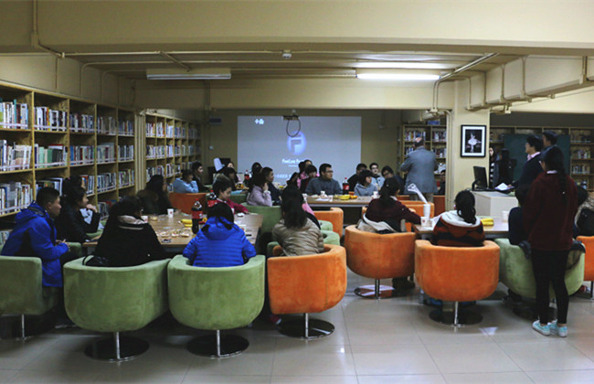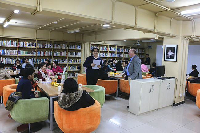 11月7日晚,在耿丹图书馆B004馆,都柏林理工学院副院长、商学院院长Paul O”Sullivan教授举办英语角活动,参加活动的有经济与管理系赵大维主任、国际交流办公室田野主任、财务管理教研室负责人王小利老师,以及经济与管理系30余名同学。