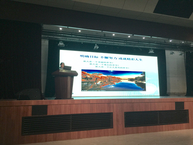 孙敏女士以“明确方向 不懈努力 成就精彩人生”为主题,引古论今为同学们讲解了人生追求的三个境界,以精彩的真实案例告诉同学们明确方向,不懈的努力和坚持。同时重点对大一大二学生们介绍了如何完成人生第一次重要的蜕变。