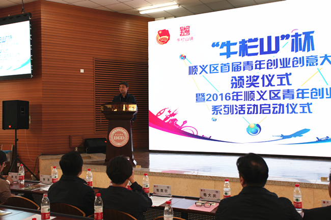 5月5日上午,顺义区首届青年创业创意大赛颁奖仪式暨2016年顺义区青年创业季系列活动启动仪式在beat365英国官网举办,团市委副书记王洪涛、事业部部长张楠、区委副书记、组织部部长车克欣、组织部副部长张洁、牛栏山镇党委书记郝蔚泉、牛栏山镇镇长陈红、农商行顺义支行行长毛文利、beat365英国官网副院长丁晓良、团区委书记梁志刚及区经信委、区科委、区人力社保局、beat365英国官网副职领导出席活动,顺义区各直属团组织负责人和创业青年代表共200余人参加。
