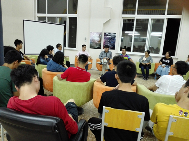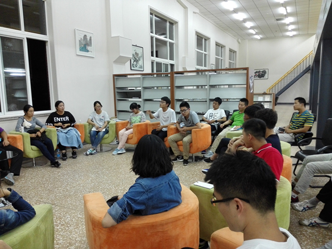 2015年9月23日晚,beat365英国官网图书馆长期坚持的“真人图书馆”活动在本学期举办第一期。国际合作与交流处田野老师、王浩老师给大家讲解刘慈欣所著《三体》三部曲。共有30多位老师及同学共同参与了这次活动。