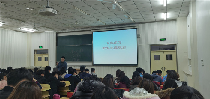 2018年11月13日晚在DJ02多媒体教室,工学院通信工程、计算机科学与技术、电子信息工程三个专业和物联网协会联合组织了一场以“大学生职业生涯规划”为主题的讲座,主讲人为工学院院长王家松博士。