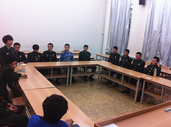 座谈会上,12名老兵分别讲述了军中的训练生活和退伍后重新回到学校的感受,在发言中,老兵们把自己在部队如何从一名地方学生向一名合格军人的转变过程做了简单的阐述,并讲述了各自在不同岗位上的所见所闻和感受,其中那些精彩的军旅生活、枯燥的训练、情同手足的战友情深深打动了在座的师生。