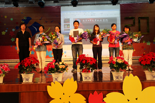 吴国蔚常务副院长宣读了《关于表彰2009-2010年度优秀教职工和先进集体的决定》。在欢快的乐曲声中,学院领导分别为获奖单位及教职员工颁奖。