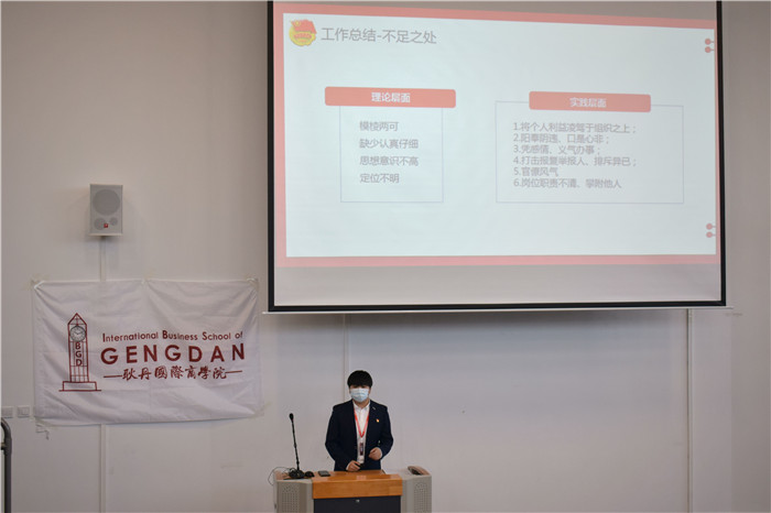 此次大会的召开,回顾了团总支学生会现阶段的收获,也分析了存在的诸多问题,希望各部门吸取经验,为以后工作做好铺垫,指明了未来发展的方向。总结过去,展望未来,在2021年即将开篇之际,我们将踏着坚实的步伐,走稳我们的每一步,创造属于国际商学院的更美好的明天。