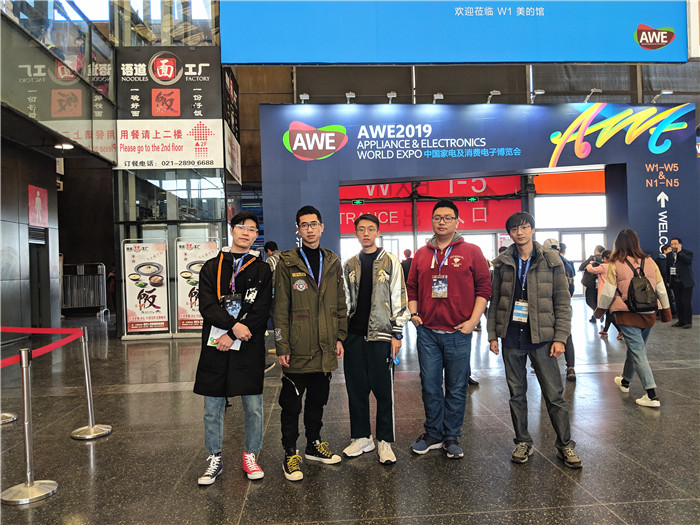 2019年3月15日,工业设计专业娄焕志和田园两位老师与吴旭宇、陈政宜、王远靖、李泽曦、雷竺颖、田曼丽等同学参加在上海举办的中国家用电器及消费电子博览会(AWE)。