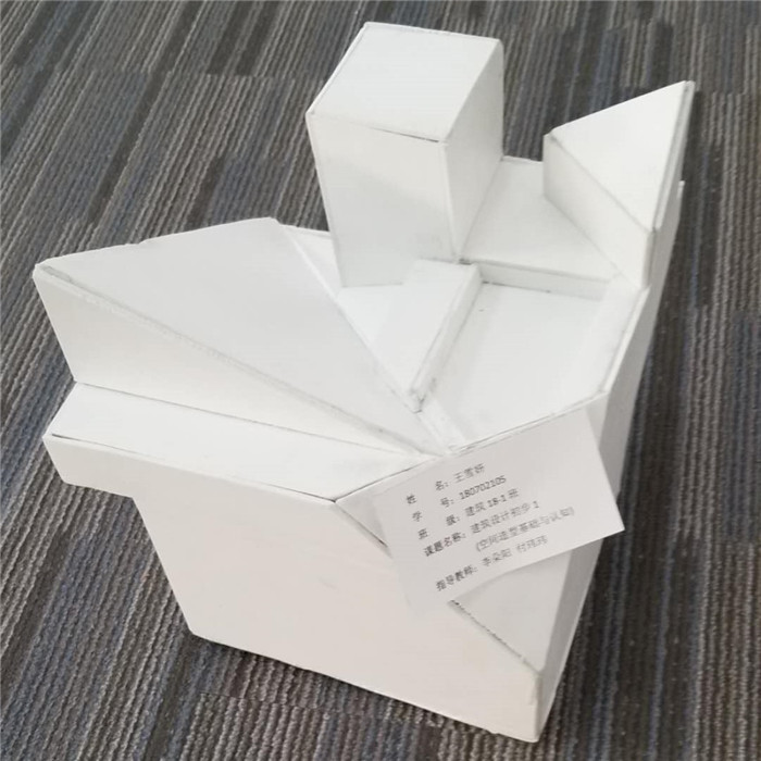 在教学设计上,李朵阳老师、付玮玮两位老师将大量丰富有趣的设计案例以及专业知识融入到课程中,深入浅出的讲解了平面构成、立体构成、空间构成等专业知识。课题通过模型和图纸的制作展开,不仅为同学们提供了展示自我的机会,更能够使同学们通过模型的制作、图纸的绘制,有效的将理论知识与实践相结合,充分发挥学生的自主创新意识,提高同学们感知空间和创造空间的能力。