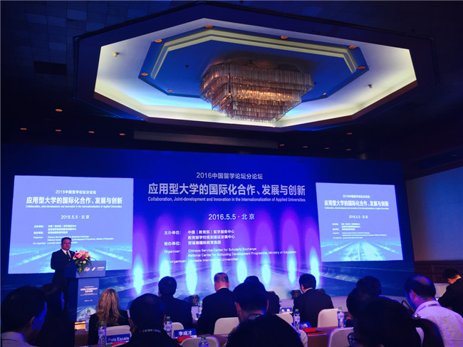 2016年5月5至6日,中国留学服务中心邀请了国内外大学及各行各业的专家们在亮马桥会议中心开展以“应用型大学的国际化合作、发展与创新”为主题的2016中国留学论坛。我院国际合作与交流处老师代表学院参加了本次论坛。