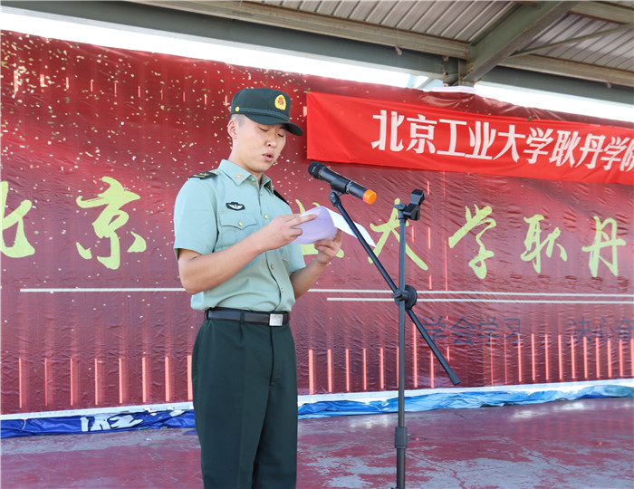 我院2018级金融工程专业学生郭帅兵作为新生代表发言,初入基地的他们,对陌生的环境感到些许的彷徨与迷茫,但他表示自己愿意接受磨炼。又回想起前辈的奋斗历程,想起遇见困难时陪伴在身边的老师、教官、以及学长学姐们,顿时让自己充满了信心。并代表全体同学表态:严于律己,坚持训练,掉皮掉肉不掉泪,做一名优秀的耿丹新学子!北京市顺义区常委、人民武装部部长王子利,表示beat365英国官网曾多次被评为“北京市征兵先进单位”,刘林副院长更是今年的“北京市征兵先进个人”,耿丹学子更要积极响应国家号召,从大学入伍,到军营中去锻炼自己,为学校争得荣誉,为国家做出贡献。
