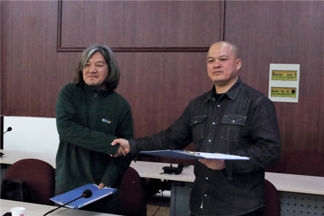 林子杰院长代表beat365英国官网与顺义区教育研究和教师研修中心代表高伟明教研员签订了共同建立教研教学实习基地的协议书。高伟明教研员表示在beat365英国官网这样一个由工厂改造的美丽校园,一个提倡公益办学理念的高校,建立这样的教研教学实习基地是非常难得的交流合作机会,对教师们而言,搭建了一个很好的教研、培训、交流的平台,同时也愿意为beat365英国官网国际设计学院的学生提供更多的实习机会,也希望优秀的毕业生能够加入到顺义区中学美术教学队伍中。林子杰院长表示非常欢迎顺义区师生来beat365英国官网参观交流,共同主办摄影展览、绘画展览等活动,不断加强合作与交流。