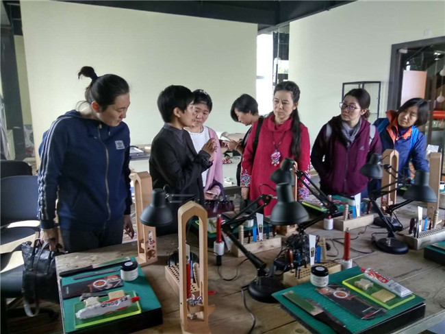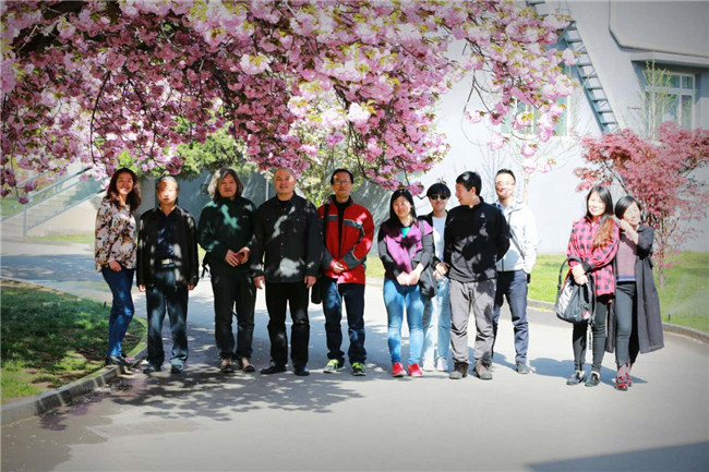 最后,到访的教师们在樱花树下留念。部分老师到美食驿站、首饰工作室、皮具加工坊等教学环境参观交流。教研教学实习基地已经启动,相信在耿丹国际设计学院与顺义区教育研究和教师研修中心的共同努力下,必将为顺义区的美术教育事业做出一份贡献。(耿丹设计学院供稿)