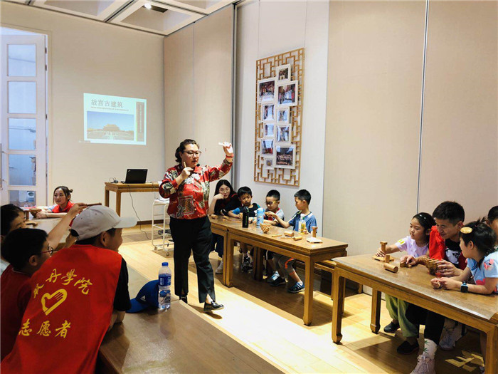 2019年6月8日国家遗产日,耿丹工学院建筑学的十名同学作为助教在故宫博物院给小学生们讲授了一堂古建筑营造课程。早上八点钟,建筑学的同学们便到达故宫的教育中心开始做准备,迎接前来参加课程的小学生们,并带领他们参观故宫的建筑。参观完毕之后,大家在故宫教育中心集合,开始古建筑模型操作课程。
