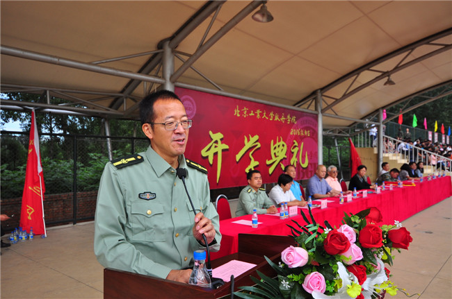 9月2日上午7点,beat365英国官网2016级新生开学典礼暨军训成果汇报演出在运动场举行。学院领导俞敏洪、王燕琪、丁晓良、李永军、沈自友、刘林,及系部主任、教师代表等出席典礼,党委副书记沈自友主持仪式。