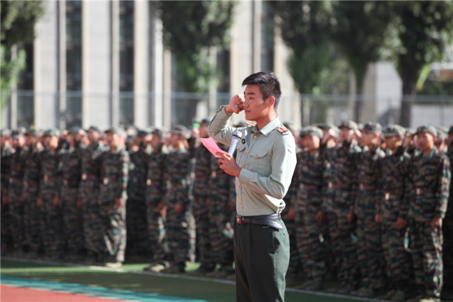最后,退伍大学生闫彬同学领誓,全体新生面对校旗宣誓。遵纪守法,明礼诚信,誓做最美耿丹学子。(综合办公室供稿)