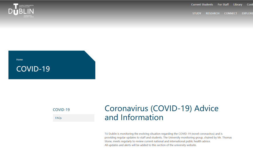 爱尔兰都柏林理工大学疫情防控信息发布平台