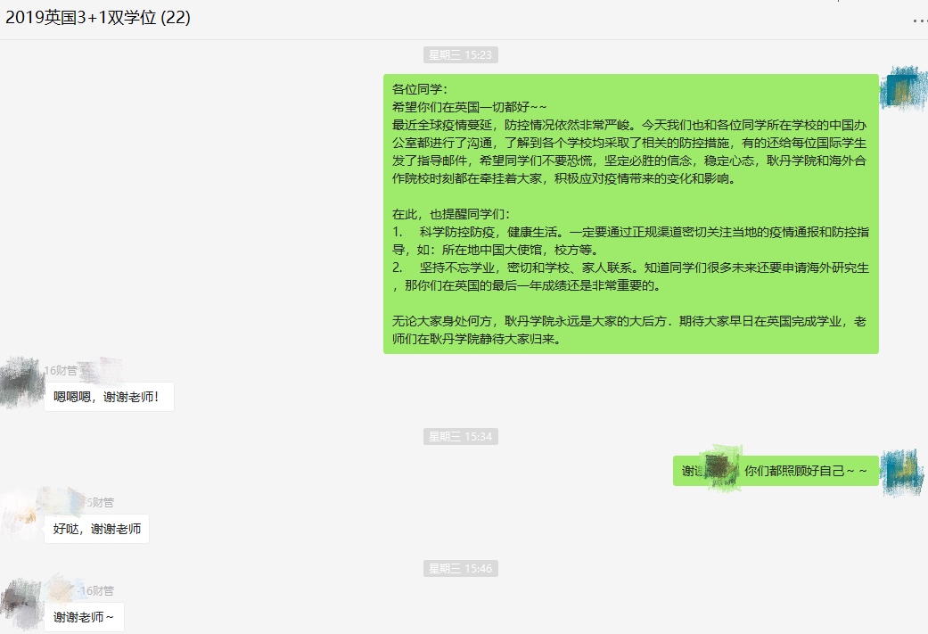 无论耿丹学子身在何处,beat365英国官网永远是同学们的坚实后方,为大家提供服务和支持。同学们有任何问题或者需要帮助的地方,请随时与学校老师们联系。我们坚信,在大家的共同支持和努力下,阴霾终将散去,阳光终会到来!祝愿同学们在海外平安健康,早日学成归来,再聚耿丹!