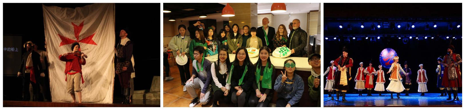 自2016年与爱尔兰都柏林理工学院合作以来,每年3月,在校举办爱尔兰国庆日庆祝日活动,中外师生共同联欢。邀请英国TNT剧团、书屋剧团到校演出莎士比亚戏剧,免费发放给在校师生观演,邀请波兰等使馆人员在樱花节到校访问交流。