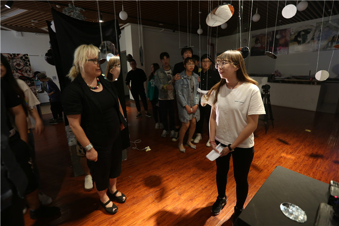 双方首先交流了耿丹国际设计学院自2017年加入Cumulus国际艺术院校联盟以来取得的成果,Eija女士就我院在Cumulus联盟中发挥的积极作用给予了充分肯定,同时对Cumulus所能提供的有利于学院发展的各平台进行了进一步说明,其中包含艺术及设计范畴的学术讨论机制及平台、学院信息传播交流平台、国际人才引进平台及其他相关优质资源等。我院也对目前实行的一系列国际化战略如国际班、全英文授课、国际双学位、国际交换资源等方面进行了详细介绍。Eija女士参观了17级国际班举办的课程展览,与学生互动,聆听了学生的作品介绍并亲自体验;随后考察了数字媒体光影工作室、Show BIM工作室、产品金属与首饰工作室、视觉传达设计国际班等地,并与在场学生进行交流,对我院实践教学环境及教学成果给予了高度的评价。