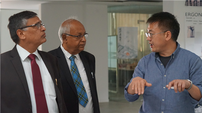 会谈结束后,双方互换礼物,合影留念,并参观了学校综合楼、图书馆及多个工作室,印度SRM大学校长一行对我校开放式的学习环境、校园设施高度称赞。