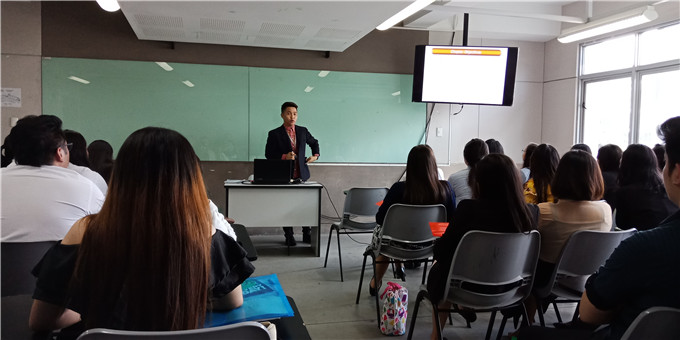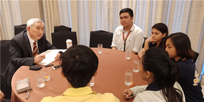 图五:丁院长与菲律宾莱西姆大学学生座谈