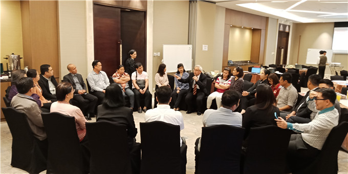 3日至4日,常务副院长丁晓良博士为莱西姆大学的42位管理人员(含二级学院院长和系主任)进行了工作坊培训。莱西姆大学每年至少组织一次所有校区的高管培训,目的是为了加强领导力与团队工作管理能力的提升。很多高管都是从菲律宾其它地区来到甲米地校区参加培训的,路途最远的教师每天开车往返需要4个多小时。即便如此,在两天辛苦的学习中,大家仍然精神饱满的投入学习。丁院长所教授的工作坊培训内容包含PDCA迭代改进教学法、组合学分制、共识工作坊和开放空间技术等。这与莱西姆大学OBE的教学理念达成了完美的结合,并且现场的高管们通过学习PDCA迭代改进教学法内容突破了自己对OBE管理的认识。培训课堂上,参加培训的管理人员结合所学内容与自己的工作实际谈出办学过程中的问题所在,并且通过讨论与演讲的方式找出解决问题的办法。在培训最后的个人分享环节中,很多管理人员表示:该校的高管们是第一次接触到共识工作坊和开放空间技术这种互动型及开放型的培训方式。他们很喜欢这种类型的培训,原因是大家在交流与分享中共同商讨办法,形成合力,才会把学校的未来建设得更加美好!