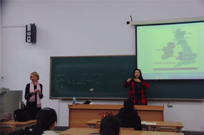 为达到高质量的课堂效果,在本次课前,Marian与任课老师张蕾进行了全方位的沟通与合作准备。在整个互动过程中,Marian与张蕾老师配合密切,从爱尔兰的地理文化到爱尔兰最重要的节日之一圣帕特里克节,同学们听得入神,并积极互动,课堂气氛十分融洽和活跃(国际商学院供稿)