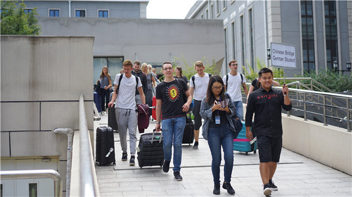 9月15日下午,95名德国师生陆续抵达我校,在办理入住、就餐之后,一行人在国际交流办公室老师和学生志愿者的带领下,分组参观耿丹校园设施,并熟悉牛栏山地区周边环境。当晚,两国师生齐聚国际交流中心自助餐厅品尝中国美食,畅聊各自喜好,熟悉彼此。