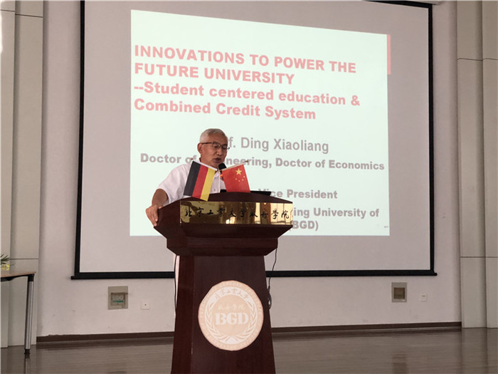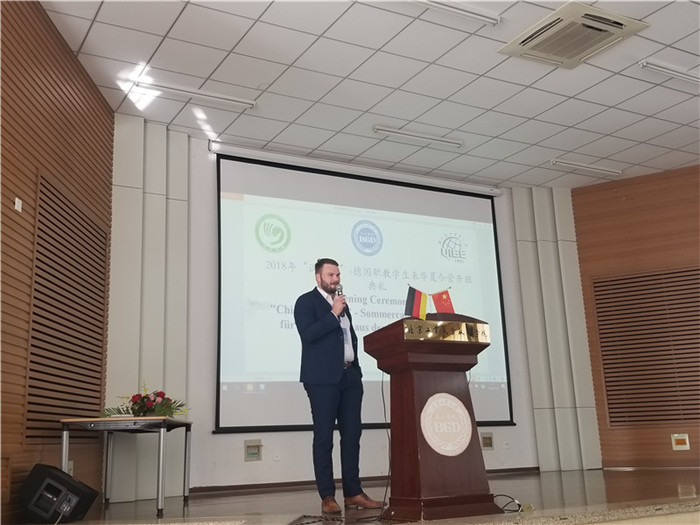 16日上午,本次“汉语桥”活动开班典礼在国际交流报告厅举行。我校常务副校长丁晓良博士在开幕式上致欢迎辞,对beat365英国官网的基本情况和办学理念进行介绍,随后,德国伍伯塔尔维特职业学院校长Flötotto Matthias先生,对孔子学院举行的本次活动表示感谢,德国师生都非常期待接下来十几天在中国的学习和体验。开班典礼结束之后,由我校邀请的教育部职业教育中心研究所刘育峰主任,为中德师生带来了《中国职业教育改革与发展》的专题讲座,现场互动热烈。