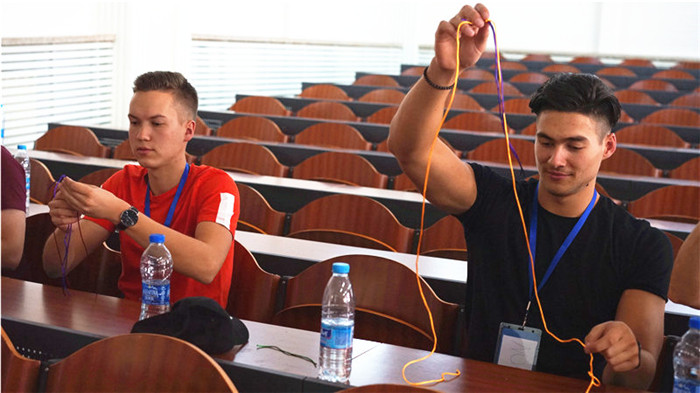 下午,来自北京国际汉语学院的两位老师,为德国师生分别进行了《剪纸》和《中国结》课程,课堂上,两位老师先简要为德国师生介绍了中国传统艺术知识、展示艺术作品,随后,就带领学生们动手操作,在剪纸课堂,学生们完成了熊猫、蝴蝶及窗花等剪纸作品;在中国结课堂,大家学会了用五颜六色的丝线编制平安扣手链。德国师生们学习得很快,动手能力也很强,当看到经过自己动手,完成的剪纸和中国结作品,大家都非常开心。