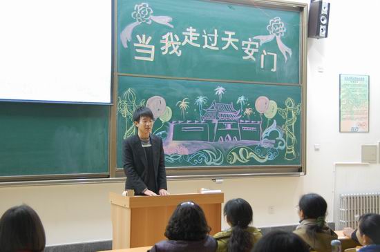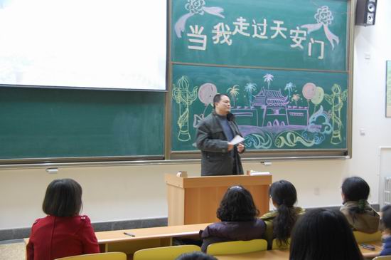 经过班级内选拔,有12名选手参加了此次比赛。同学们用生动的图片、感人肺腑的语言展示了祖国六十年的繁荣昌盛和身为耿丹学子的骄傲自豪。现场气氛热烈,白安琪同学以她温馨、自然、动人的讲述使演讲活动达到高潮并获得本次演讲比赛的一等奖。最后,金处长、林主任做了精彩点评,并对演讲优秀选手进行了鼓励和嘉奖。