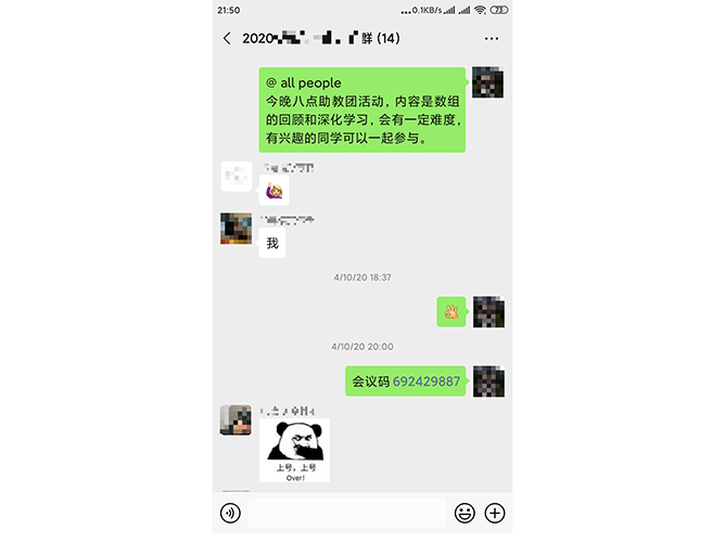针对线上教学的这种特殊情况,在同学们自愿的前提下,通信工程专业有的课程成立了课外辅导群。该群主要在晚上活动,一般是晚上八点开始,持续时长不固定,一般为2到3个小时。主要帮助同学们进行知识点的回顾、复习和强化。有时候也会对作业题进行提示性讲解(经常有学生反映自己上课听懂了,但一做题就不知从何下手)。
