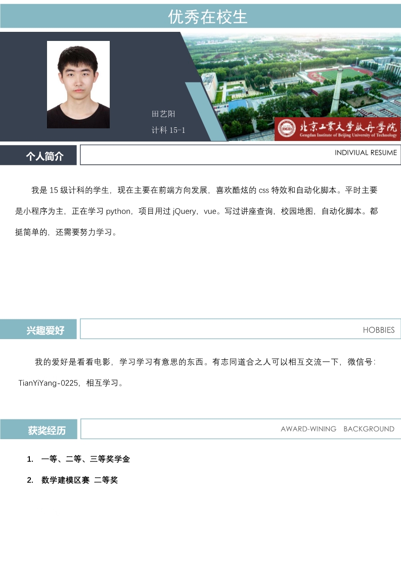 优秀在校生 计科15-1田艺阳