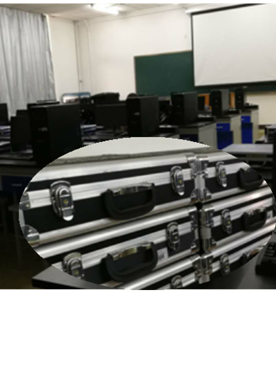 EDA技术实验室,面积108平方米,共25个教学工位。主要配有台式电脑25台、RC-EDA/SOPC-II+ 型实验箱25台、多功能EDA开放模块18台等。学生可以独立完成几乎所有的EDA基础实验如组合逻辑实验、电子抢答器设计、计数时钟综合实验、A/D转换实验、可控脉冲发生器、正负脉宽数控调制信号发生器、序列检测器、四位移位乘法器等;也可以进行实训项目如数字钟、简易彩灯控制器、正负脉宽数控调制信号发生器、交通灯信号控制、电子密码锁设计等。