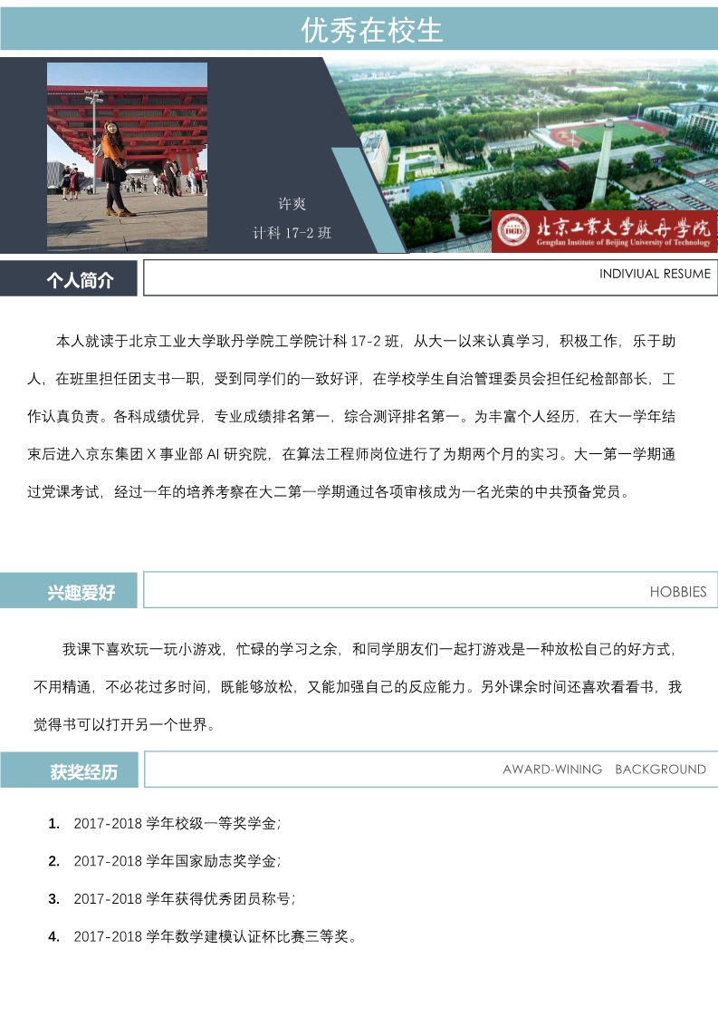 优秀在校生 计科17-2班 许爽