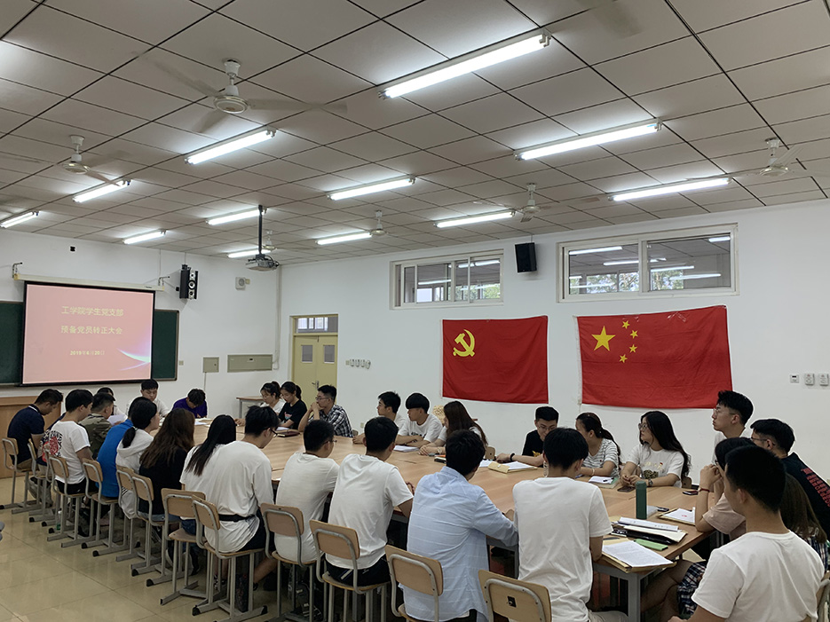 beat365英国官网工学院党支部于2019年6月20日16:00在B208教室召开了支部预备党员转正和党员发展大会。党支部书记张磊老师主持本次会议。