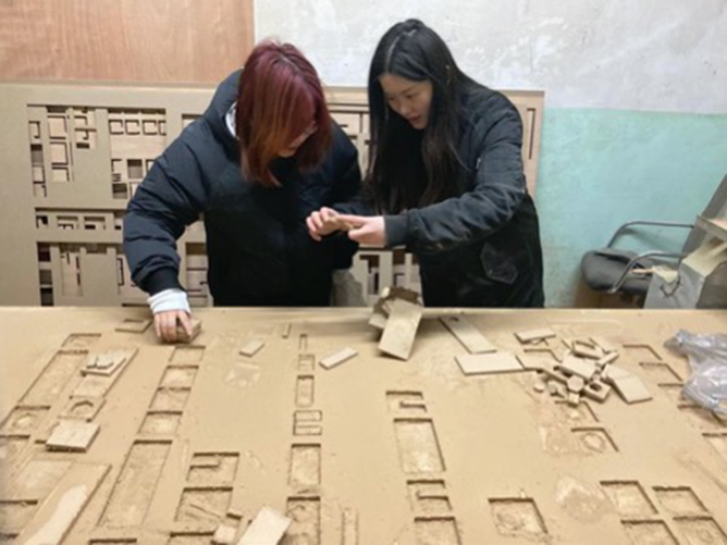该课题是18级建筑学专业同学的一次全新挑战,课程设置在之前所学知识的基础上提出了更高的要求。设计围绕一块位于东四十一条的实际基地展开,学生首先进行了实地调研,了解了北京老城区的空间形式、人文特点以及交通条件等背景,并参观了数个院落改建优秀项目。学生以小组为单位通过调研结果提出问题并设定业主,确定设计方向。过程中,各小组以草模推进设计,逐步解决了空间体量,功能分区,交通流线,材料使用等问题,产生了多个1:50的实体模型。中期评图时,各小组进行了设计过程的ppt汇报,将设计思路可视化。基地现有实际项目的设计师也一起参加了评图,分享给同学们很多专业的意见。中期之后,最终设计方案确定,各组进入到正模制作以及最终图纸绘制的阶段。这对于二年级学生是一个巨大的挑战,学生需要学习从实体草模返回数字模型,再把数字3d模型拆解成满足数字化加工的2d图纸,接着使用cnc数字切割技术和激光切割技术完成组建制作,最终将各个组建拼接成正模。期间,学生对材料选择、图纸绘制、数字加工、时间规划有了深入的体会,收获巨大。在终期评图中,来自北京建筑设计研究院和中国建筑设计研究院的两位建筑师充分肯定了2个月来同学们的努力和获得的成果,也和大家做了多方面的探讨。通过该课题,学生了解了小型建筑空间的设计过程和设计方法,为更加复杂的建筑空间设计奠定了基础。