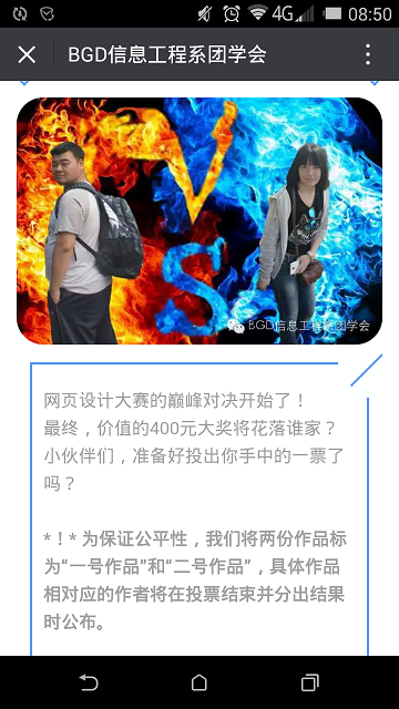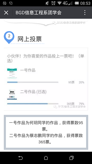 决赛阶段,我们采取通过信息工程系团学微信平台投票的方式来决定冠军作品的归属。