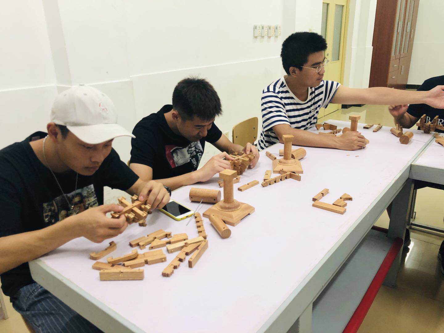 理论知识讲解完之后,纪老师亲自对五平身科斗拱的拆解与组装进行了演示。过程中同学们非常认真地听讲并积极地进行拆解与组装的练习,最后同学们轮流上台做斗拱拼装的讲解与演示。