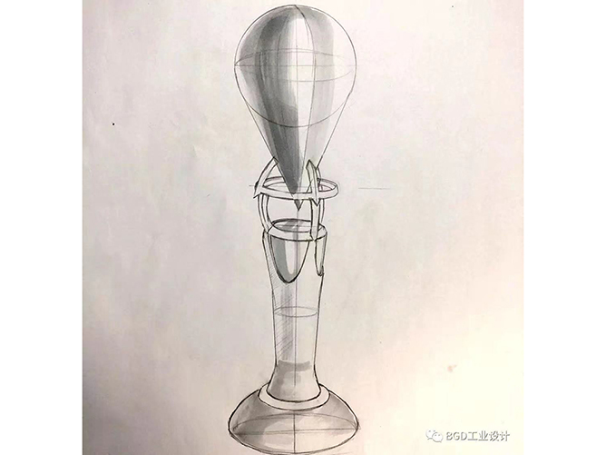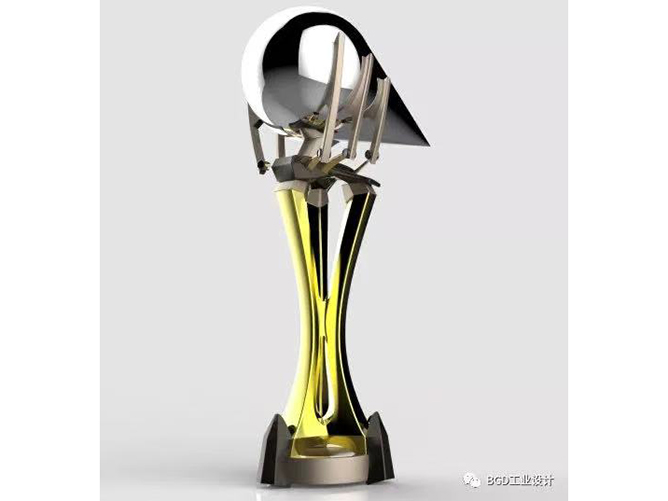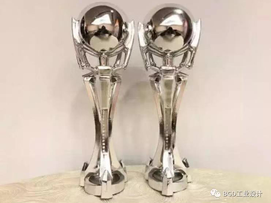 大会组织方要求依托《三体》科幻小说来设计奖杯,同时要有水滴的造型。费振林同学历时三个月,最终打造出令科幻大会满意,充满了设计感和科幻未来感觉的水滴型奖杯。