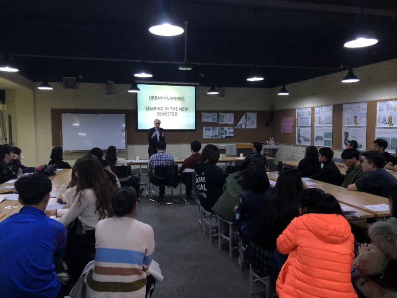 2019年2月27日下午,工学院城乡规划专业在建筑与环境规划院召开新学期师生大会,主题为国际交流宣讲与实习同学经验分享,工学院院长王家松、工学院学术委员会主席汉克·万德·凯普、国际交流办公室主任田野、副主任王小宇、城乡规划专业负责人蒋天洁和城乡规划专业全体教师以及全体学生参加了大会。